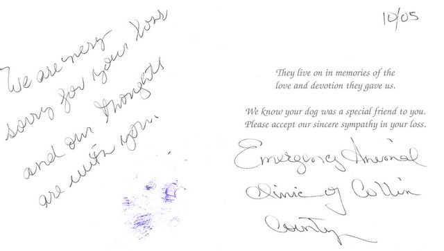 Mollie Documents -- Note from Emergency Animal Clinic of Colin County